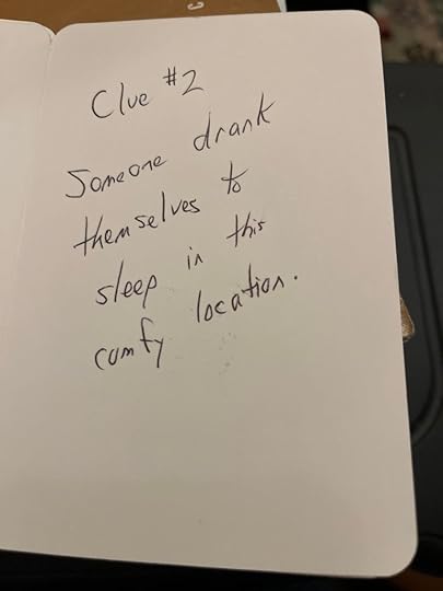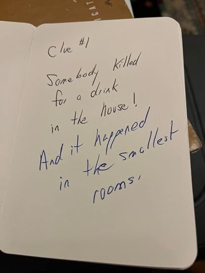 It started on Saturday, when my parents came out to visit and brought me a gift. It was a lovely bottle of wine. On Sunday, because Ken and I were going to Toronto on my actual birthday to attend a poetry reading by one of my wonderful authors, Bill Garvey, as well as an upcoming poet Paul Edward Costa, we had my birthday party. I got home from work at my new weekend job at the best bookstore in the province, the Riverside Bookshelf, and Ken announced that he, Kate, and Max had prepared a Scavenger Hunt for me, Clue style. I started in the kitchen with the following clue: