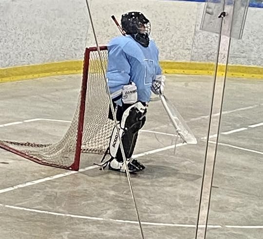 And the best part was that I had the whole thing completely backwards—the goalie is the one LEAST likely to get hurt because no one is allowed to go into the inner crease plus the goalie is dressed like a giant mattress and everything just bounces off him. Well, off my nephew. Not the other goalie, who let in 16 goals. As my nephew succinctly pointed out, “Their defence sucked.” But their offense? That was killer. Literally.