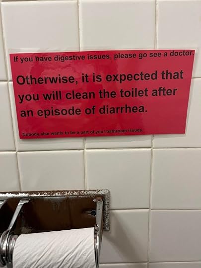Then in large print: “Otherwise, it is expected that you will clean the toilet after an episode of diarrhea.”