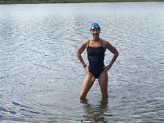 I waded into the squishy mud, feeling the chill of the water on my lower legs before I took a deep breath and plunged in. The water was dark and murky. The cold water enveloped my being, snapping my existence into sharp focus. I swam toward the other side, where siting ahead, I could see a great blue heron walking around near some tall reads. I felt such an impulse to shout for joy.
