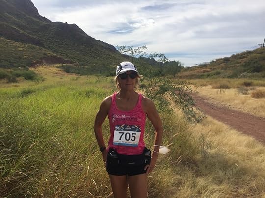And then I approached the final hill. I could barely propel my body in a forward direction. My stride decreased to an inch, maybe less. It was like I hit a wall. I felt breathless and like I might stumble. So I walked up the worst of it. Told myself I could still make it. My husband was on his way downhill. I knew eventually, I would be going down, instead of up the hill. And so I kept going. Eventually, the hill leveled off and I made the loop and approached the steep downhill. I took one last look at the Catalina Mountains and the wisps of fogs that drifted, obscuring part of their flanks before focusing on my feet as I made my way down the hill. Because if there’s one thing you need in this race, it’s good balance – for descending stairs and steep declines without landing on your backside, for jumping across rushing water or around big rocks or keeping your balance when you’re skating through mud.