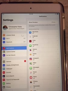 I went into settings. And the list of items that had notifications defaulted to on were tremendous. App Store, Calendar, Calm App, FaceTime, Games, Home, Instagram…you get the picture. There were ten more. I turned notifications off on all of them and guess what? My music started playing normally again. I’m not sure which notification was the music-stopping offender. But I’m content for now to leave them off so my music plays uninterrupted AND I have less distraction.