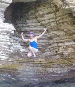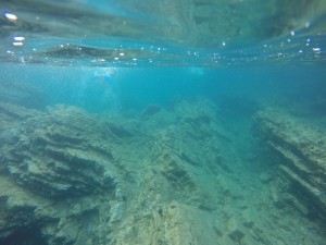 In the pool, I felt confined. In the Ionian Sea, I feel suddenly free. I cruise along, gliding through the buoyant, salty sea until every smooth stroke feels like meditation. Peering through that crystal clear water, I watch schools of fish dart out of my path. I slide my hand over beds of tilted and buckled limestone that have been subjected to millions of years of the earth’s compressive forces.