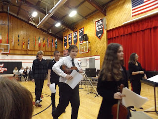 Over the past few months of my hiatus from this blog, Thomas has taken over the concert master position with the Bangor Symphony Youth Orchestra Prelude division. We think this may be his last season with the prelude because at the same time he is playing with the prelude, his teacher and conductor(one and the same lady)has placed him with the "big kids" Philharmonic orchestra. As kind of a send off from the prelude, he is going to be playing his very first "professional" solo in April with the orchestra back up. He is so excited. He has also been selected to have a master class with the Bangor Symphony Orchestra's concert master in April as well as being invited to perform at the BSO's Soiree, I believe sometime in April as well. This is their biggest fund raising event and includes some of the most prestigious violinists all joining in to raise money for the BSO.