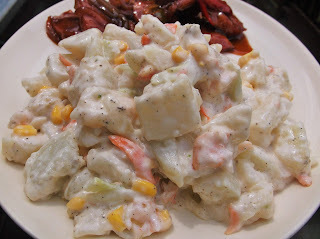Who doesn't invariably have leftover lasagna noodles in the cupboard? I do constantly! So rather than looking at them every single time I open the door, I cooked them up for this refreshing, cool and great tasting seafood salad. Nothing fancy, high-end, gourmet or even expensive. Just good ol' eatin'!