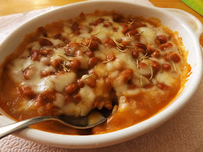 Cheesy Italian Baked Beans A tasty Italian rendition to the Baked Beans we enjoy in New England, but taking a fraction of the time to prepare. Although the Native Americans in New England used corn as a support-base for growing the common bean(as part of the Three Sisters), in Italy the Romano bean was used in their version of the Three Sisters. This fiber-rich bean are most often found in Minestrone soups, fagioli dishes and poultry cooked in the style of all'uccelletto. It is one of the few hearty bean varieties that pair perfectly with pungent and bold Mediterranean spices, such as listed below.