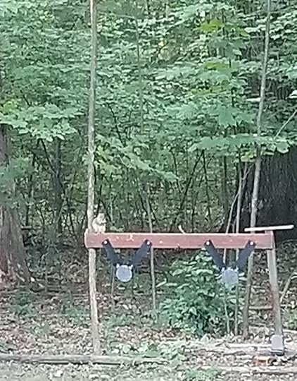 However, I noticed a big female sitting on the guy's targets quietly watching. A very stoic creature. The others paid her no attention when she occasionally climbed down to nibble on some corn, then return to her post.