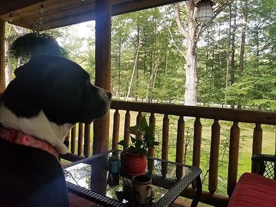 The dew is too heavy to sit on the deck, so I retire to the porch.