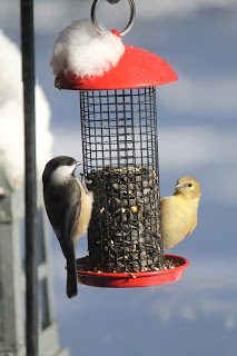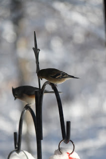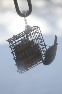 Son #3 and I filled the feeding stations as the first snow began to fall. It didn't take long for the critters to arrive.