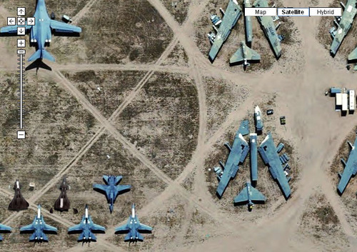 And this Google Earth shot of disassembled F-19s at an airplane boneyard in Arizona: