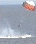 The pilot, who had the good sense to eject, lands safely. His account, along with an NBC news video clip of the account, are here: