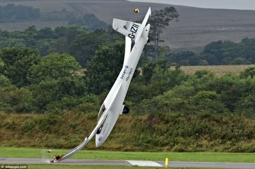You know the old adage that any landing you can walk away from is a good one? That was put to the test at a 2010 English air show by this Swift S-1 glider. A spectator snapped the following sequence.
