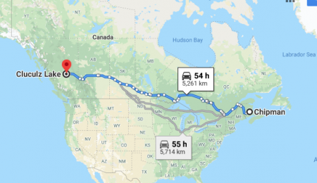 Ten days earlier, I’d driven from Chipman, New Brunswick to Portage la Prairie, Manitoba, (by myself) which took 4 days. I visited with cousins for a week, (my back appreciated that) then flew from Winnipeg to Vancouver, (3hr 03min).