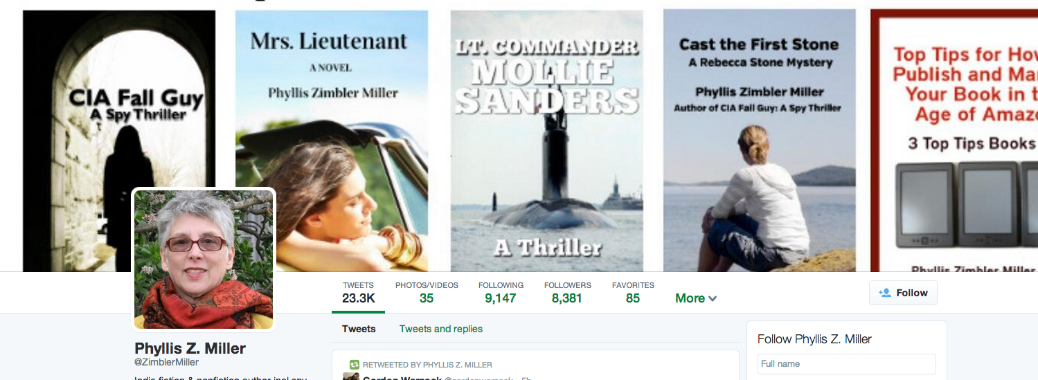 Phyllis Zimbler Miller on Twitter is at http://twitter.com/ZimblerMiller and she is the author of fiction and nonfiction books on Amazon. Her fiction books on Amazon can be found atwww.amazon.com/author/phylliszimblermiller and her nonfiction books atwww.amazon.com/author/phylliszmiller
