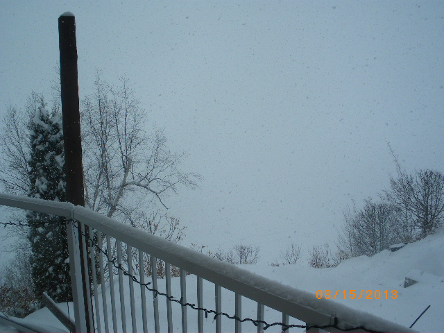 This is what it looked like when the sun came up yesterday. It appeared we were surrounded by a grey wall. My husband went out and shoveled. An hour later...
