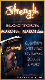 At any given time, if you stop by Carrie's blog you'll probably find her shouting out about another author, someone she admires and respects. Now it's our turn. Carrie is currently doing a book tour for her first novel STRENGTH, an adult paranormal romance, now available from Sapphire Star Publishing! She's stopping by today to share the condensed version of her publishing journey.