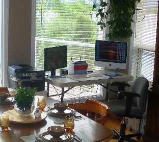 Speaking of picture -- Picture this: Joylene (me) sitting at the monitors below for hours on end, wracking her brain, composing the most prudent of prose, half-starving (husband cooks breakfast), and...