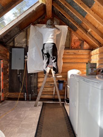 If you’ve read earlier posts, you’ve heard we settled onto our property at Cluculz Lake after wandering about for 4 years. We bought a winter-packaged RV, constructed a steel canopy over it, dug a well, installed utilities, and even purchased a Telus Hub. Our summer home: serene, quiet, the perfect abode for writing. Which I didn’t do. Landscaping, minimalizing, and 5 months of prepping for a month-long garage sale took precedence.