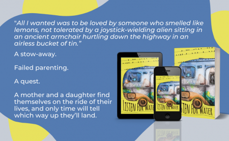 Listen for Water is a snappy, bittersweet coming-of-age novel that tells the story of roles reversed–a daughter, Dakota, charged with keeping her mother, Ray, and their lives right-side up. It’s no easy task for a teen who wants to be anywhere but with Ray who is hellbent on living as though she wasn’t somebody’s mother.