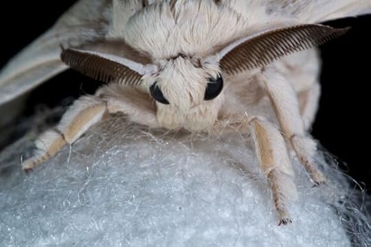 Then there’s the author’s own experience of these strange creatures, “cute but not beautiful”, and unable, in their adult form, to eat or defecate — “nor do they do much at all as moths, except to mate and die.” As a child Prasad used to feed her larvae with mulberry leaf paste, then watched as they span “cradles of their own making, swaddled in kilometres of pure white silk.”
