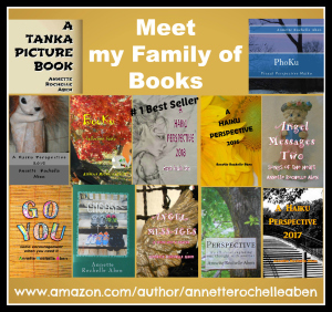Annette Rochelle Aben writes the most beautiful and heartfelt poetry, most frequently in the form of tanka and haiku verse. Annette bares her thoughts, feelings and soul to the world with her writing and enables you to experience her joy and delight at living with her.