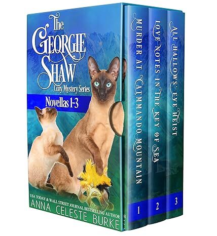 My ReviewI read The Georgie Shaw Cozy Mystery Series: Novellas 1-3, by Anna Celeste Burke: Mystery at Catmmando Mountain, Love Notes in the Key of Sea, and All Hallows’ Eve Heist. These three novelas come packeged together on Amazon, and I recieved a free copy of the set through a newsletter of some sort. It pays to have those newsletters in my email when I’ve wrapped up my reviews for the year and am looking for new stuff to read and review for the coming new year.