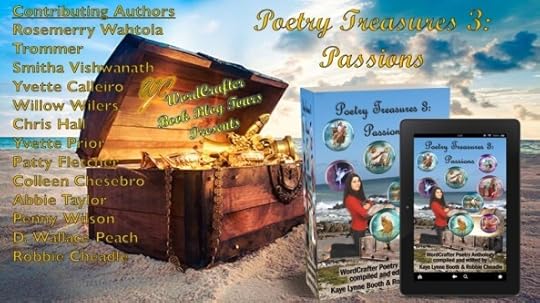 Join us for Day 3 of the WordCrafter “Poetry Treasures 3: Passions” Book Blog Tour over at The Showers of Blessings with Miriam Hurdle. Drop by for poetry readings by contributing authors, D. Wallace Peach and Abby Johnson Taylor. And don’t forget to comment for a chance to win a digital copy of the anthology in the giveaway.