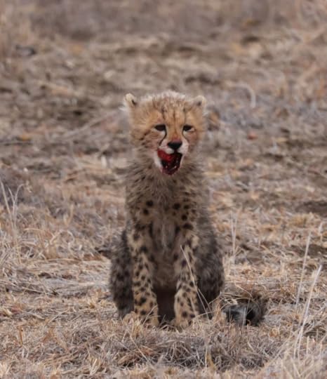 Note: Cheetah cubs mimic honey badgers in appearance. They have a thick silvery-grey mantle running down their backs that gives them the appearance of a honey badger. This is a form of camouflage and makes the cubs look like an animal known for its fierce and fearless nature. Cheetah cubs are at risk of being eaten by most other predators so this honey badger disguise acts as a deterrent to potential predators giving them a better chance at survival.