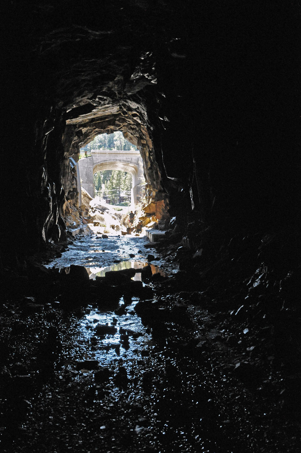 This is tunnel 6, dug 1,600 feet through solid granite. They were able to dig about four inches a day. It would have taken them 17 and a half years except that someone had the bright idea to bore a wide hole through the top of the mountain, halfway into where they wanted the tunnel to go. Workers were lowered down into it so that the tunnel could be dug out from four places at once: both ends and each way from the middle.