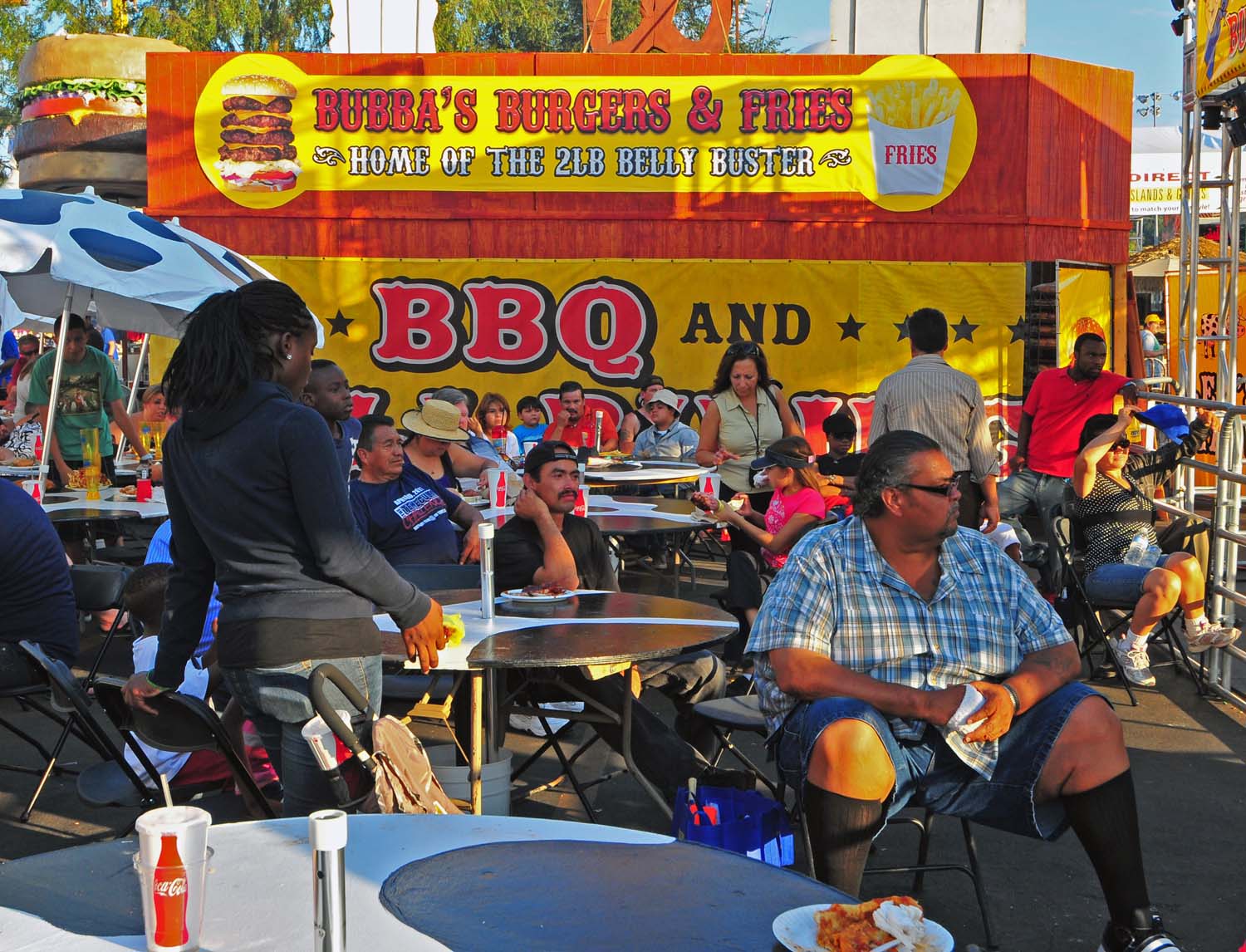 And people ate stuff, lots of stuff, most of it really bad for them (and me.) The best thing I ate at the Fair was the porkchop on a stick ("A delight like no other.") It was indeed a delight, excellent even, but really, it was very similar to many other porkchops I have had, only on a stick. The Fair seemed the wrong place for sushi. Neither of us was tempted by Buster's 2 lb Belly Buster burger. But other people were.