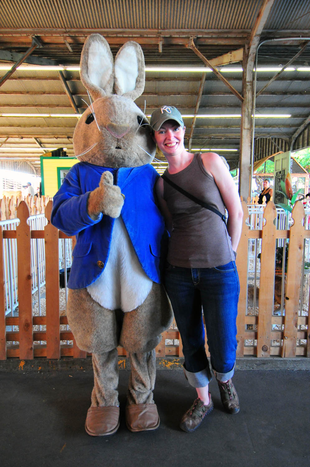 And I mentioned that Ashley loves the bunnies. The real ones were out of reach in pens, so I made her pose with this poor young woman who was no doubt sweltering inside of her bunny suit: