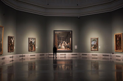 Tal y como las madeleines de Proust, algo extraño para mi sucedería aquella mañana fría de domingo en Madrid. Cuando caminaba ante innumerables obras maestras en el Museo del Prado, entré, sin percatarme del todo, a una enorme sala oval rematada en una cúpula de muy grandes dimensiones; recuerdo haber estado pensando en la cuantía de la gente presente y de su pequeñez ante la grandeza del lugar que se me ofrecía a la vista. De repente, en un extremo de tal sala, pude ver por primera vez “La Familia de Felipe IV”, mucho mejor conocida como “Las Meninas” de Velázquez. Y es que, de entre aquellas conversaciones de domingo con papá, mezcladas con los cantos gregorianos, Wagner y Macbeth; el Entierro del Señor de Orgaz de El Greco y las Majas de Goya, siempre estuvieron Las Meninas. Me encontraba ante el enorme cuadro de 3 x 3 metros, curiosamente sin mucha gente a mí alrededor… y en ese instante y sin poder evitarlo las lágrimas cubrieron mis ojos. Recuerdo pensar “Vamos, ya estás viejo para estas cosas”, pero ni así pude dejar de llorar. Las Meninas significaban para mí mucho más que una obra mayor del arte español, tal vez la más importante de Don Diego Rodríguez de Silva y Velázquez ( Sevilla , 1599 - Madrid , 1660 ), pintor de la corte de Felipe IV, pintada ni más ni menos que en 1656. Tratando de razonar sobre mi reacción, deduje que efectivamente una obra de arte conmueve las fibras más sensibles de una persona (pero ¡por Dios! venía de ver hermosas obras de Rafael, Tiziano, el Greco y Rubens…).