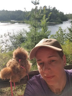 Then things got crazy. Laya and I traveled to Michigan's Upper Peninsula for yet another art fair. We camped and did some exploring and in the process, ended up in a lot of people's vacation photos. As it turns out you apparently don't see a lot of people taking their chickens on touristy walks. I may have also composed another children's chicken book while I was there. The words are not yet on paper but reference photos were taken.
