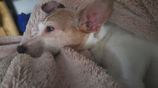 Say hello to my new shadow, 9 year old Skittles. He's currently curled up in my blanket next to me on the chair. He prefers to be attached if I'm stationary anywhere. Good thing he's small because my chair isn't that big.