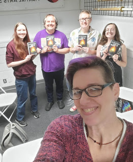 The refresh for the interiors of The Narvan series are done and uploaded. This was more of a 'for me' thing because I wanted them all spiffy to match the new novella prequel release of One Shot at the Sphinx. Which, if you didn't grab your copy from my last post, it's still free on Smashwords, B&N, and Kobo. In addition to several events, I visited with the members of the book club at Jason's Books and Coffee in Grand Rapids who read Destiny Pills & Space Wizards. (And yes, I look weirdly photoshopped into that photo, but it's legit. Crazy phone camera focus)