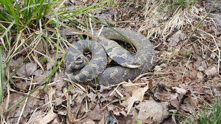 Not a stick! This Easter Hognose snake slithered through the yard.