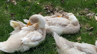 The ducks are getting their wing feathers, not that they will be doing much flying.