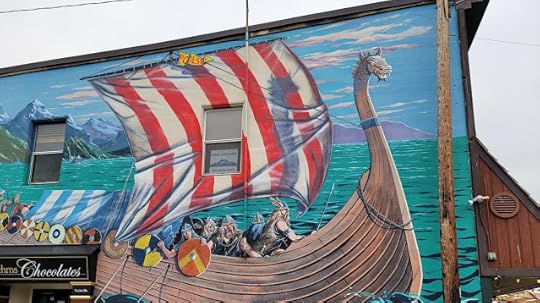 There's also a huge mural on the side of a building of a Viking ship sailing in a fjord.