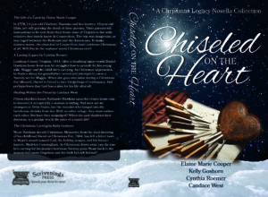 Chiseled on the Heart by Kelly Goshorn, Elaine Marie Cooper, Cynthia Roemer, and Candace West — Four generations carve out a journey of faith. The four-story novella collection spans nearly a full century, from the late 1700’s to the Civil War era. Chiseled on the Heart portrays how a shared love of woodcarving and an heirloom nativity bonds four generations of Hawkins men. The Gift of a Lamb by Elaine Cooper; A Lasting Legacy by Cynthia Roemer; Healing within the Pieces by Candace West; The Christmas Carving by Kelly Goshorn (Historical Romance from Scrivenings Press)