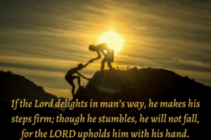 “If the Lord delights in man’s way, he makes his steps firm; though he stumbles, he will not fall, for the LORD upholds him with his hand.” ~Psalm 37: 23.24