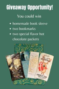 Crystal is offering some fun giveaway items, including a couple of bookmarks, a homemade book sleeve and hot chocolate mixes. Enter the Rafflecopter giveaway below for a chance to win!