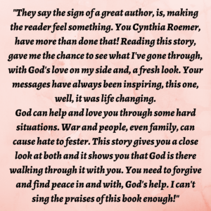**Connect with Cynthia Roemer on Facebook, Goodreads and Twitter.