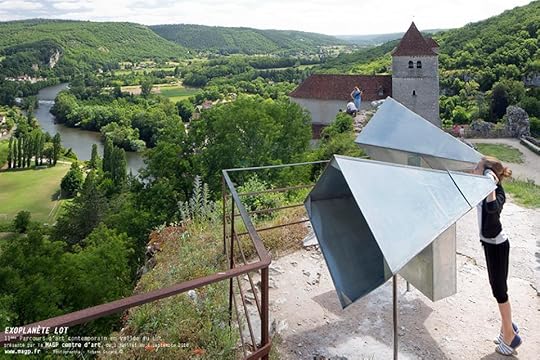 Candiani installed the amplification sculpture pictured here to enable people to listen from the clifftop at Saint-Cirq-Lapopie to the song resonating in the Lot Valley below. You can listen to it here.