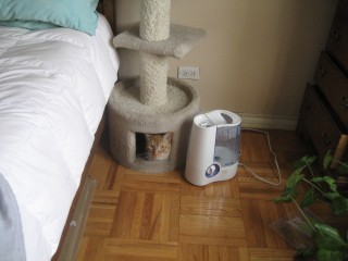 An Early Morning Cat Crazies start to the day -- thankfully, they started up at 5:45, so I could to ignore them for 15 minutes before my "I should get up anyway" voice kicked in. And then, at the dot of 8am, Boomer retreated to his hideyhole, even before the workmen arrived. Maybe he not quite so dumb as he looks (or he's dumber. tough to tell). Pandora, on the other hand, has reached the "eh, whatever" stage, and now sits on my desk and glares in the direction of All That Noise In Her Kitch