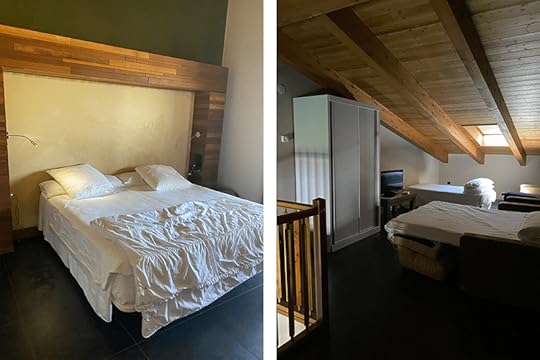 Para que os hagáis a la idea, el hotel aprovecha la parte abuhardillada para colocar una zona extra en el altillo. Justo debajo está situado el baño que es muy amplio y agradable. Ahí hay dos sofá cama de buenas dimensiones y una cama sencilla extra. Además en la parte de abajo cuenta con una cama de matrimonio muy cómoda.