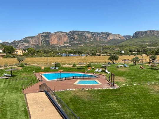 Como os conté en 2020 teníamos previsto un viaje a Estados Unidos en familia que la pandemia echó para atrás. La verdad es que necesitábamos vacaciones como el comer, pero no nos atraía mucho la idea de marcharnos a hoteles muy concurridos. El verano pasado nos fuimos a Laguardia en La Rioja a un hotel spa chiquitito que nos encantó (éste), tanto que este 2021 buscábamos algo parecido: que estuviera cerca, que fuera pequeño, tuviera piscina y a ser posible spa. Y lo encontramos en la localidad de Murillo de Gallego, a apenas hora y cuarto de Zaragoza, el Hotel Aguas de los Mallos. Cuenta con 27 habitaciones con los Mallos de Riglos de fondo, en lo que de manera tan acertada como cursi suele denominarse un marco incomparable.