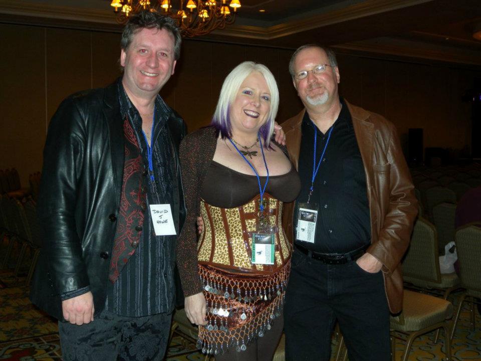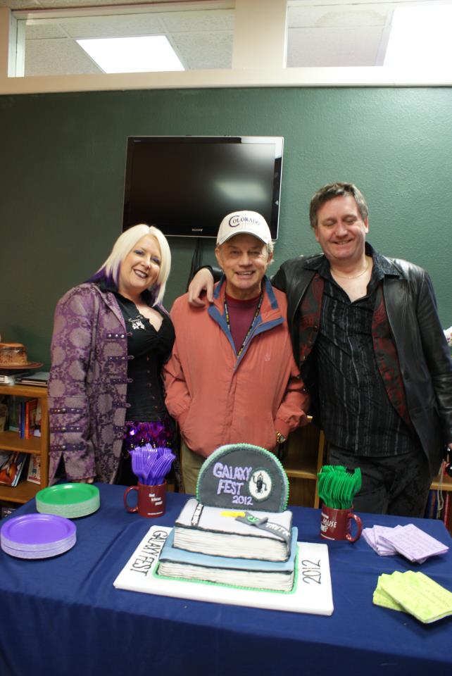 On Friday the convention started and so we were seriously to work for the first time. We were allowed in the dealer's room around 10am to set up our tables and then went off to relax for a few hours. The event officially started at 3pm when the dealer's room would be open. Outside in the lobby there were huge queues forming for people to register and the hotel was buzzing with anticipation and excitement which was emanating from the attendees. The dealer's room was huge, filled with booksellers, steampunk stalls, artists and of course the main guests which included Kevin J Anderson, Dean Haglund, Denise Crosby, Chase Masterson, Angus Oblong, as well as David Howe, Frazer Hines and me. I noticed that outside there were many tables lining the hallways which were rapidly filled with a variety of dealers also.