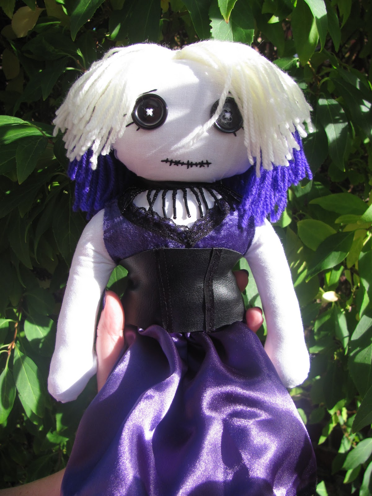The doll is custom made and comes with a certificate of authenticity.She's a 14" ragdoll and she's been designed to look like me. She's even got purple in her, wears a purple dress and a black corset.