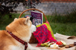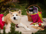 Lovely owner Elena, who you can see here enjoying an autumn picnic and some fun Akita reading time with Gulia, writes . . .