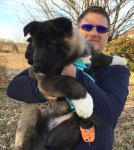 “Just over two years ago, we decided to enlarge our family, and met some local pups. Four lovely American Akitas came tumbling out—but only one ran over to us.